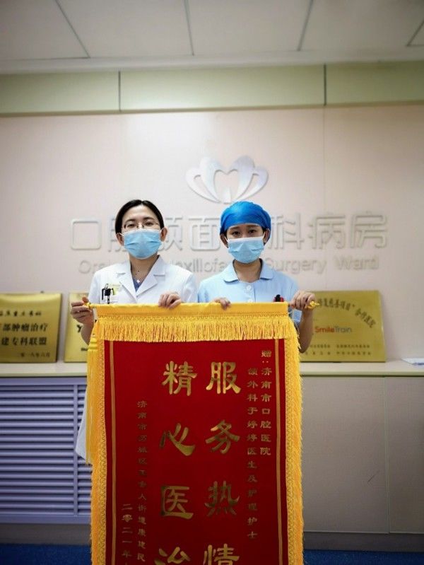 “服务热情,精心医治。”8月17日,济南市口腔医院颌面外科患者康某将一面锦旗送到了病房,以此表达对该院颌面外科病房医护人员精湛医术和优质服务诚挚的感谢。